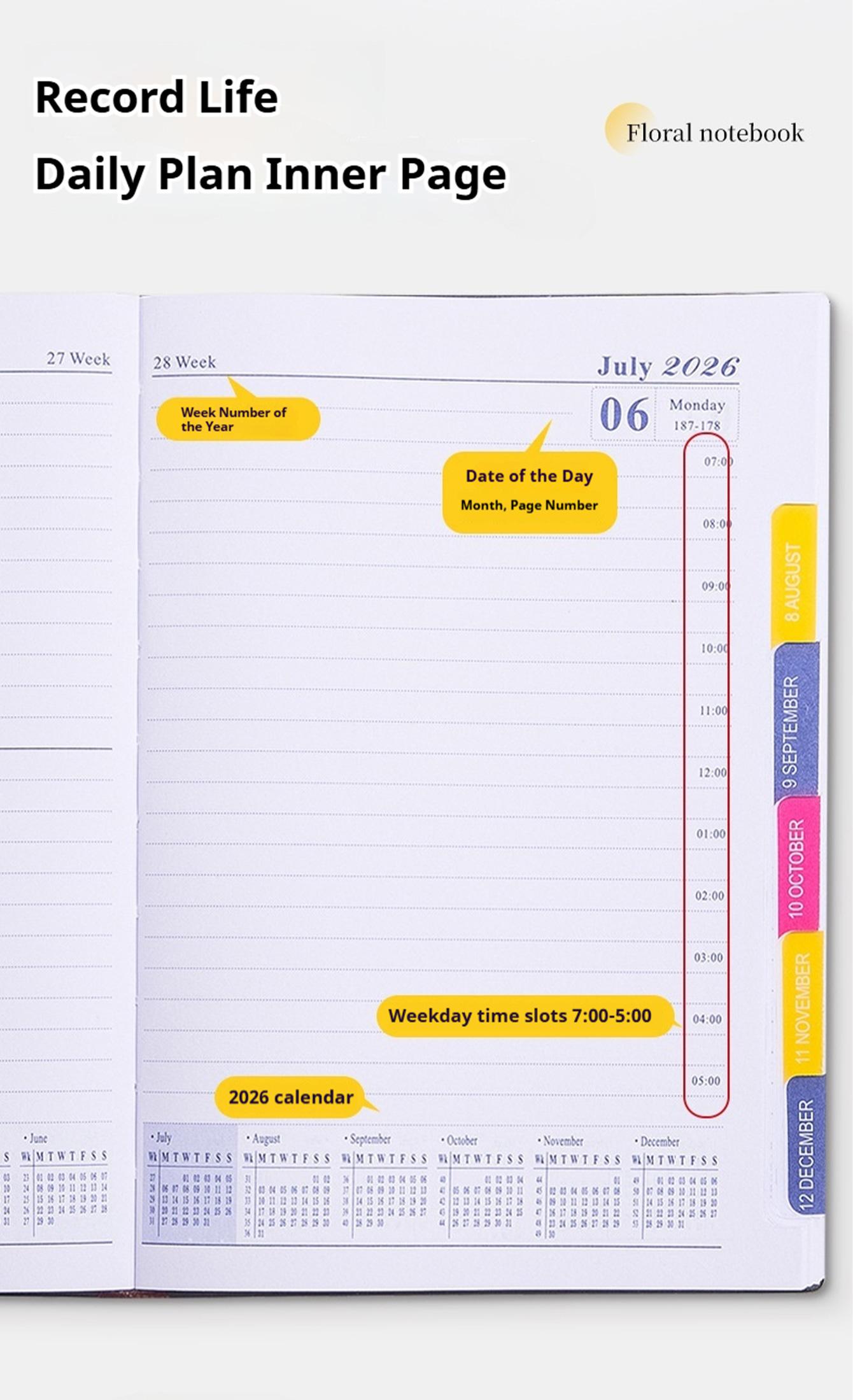 【A5 Size】: Perfectly sized for portability, the A5 format allows you to take your planner anywhere, making it user-friendly for daily organization.